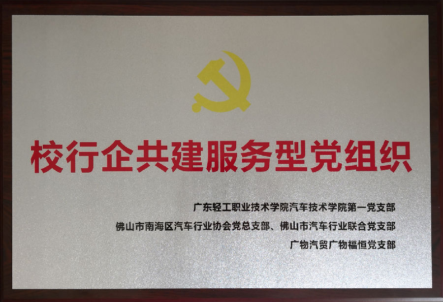 在会议上,三方党支部分别介绍各自单位党建工作发展情况,深入交流并达成三方携手共建服务型党组织共识,共同推进以党建引领深化校行企产教融合,促进人才培养和社会服务。三方共同签订了《“校行企共建服务型党组织”共建协议》,并进行了三方授牌仪式。汽车技术学院还向广物福恒公司的张宏伟总经理、佛山市汽车行业协会黄招柳秘书长等6位汽车行业的业务和管理骨干颁发了《大学生校外实践指导导师》聘书。