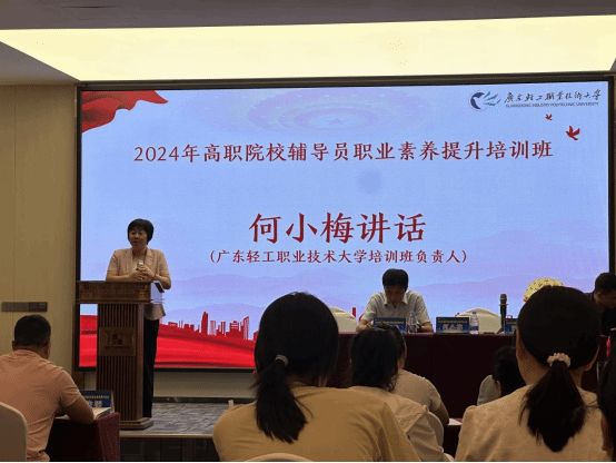 8月20日,国家级职业教育“双师型”教师培训基地广东轻工职业技术大学组织的“2024年高职院校辅导员职业素养提升培训”在广州市白云区嘉禾空港大道嘉大广场柏高酒店顺利开班。我校学生工作部主任杨伟柱,汽车技术学院党总支负责人何小梅,培训班班主任刘禹杉、江启宇、谢卓华出席了本次开班典礼。