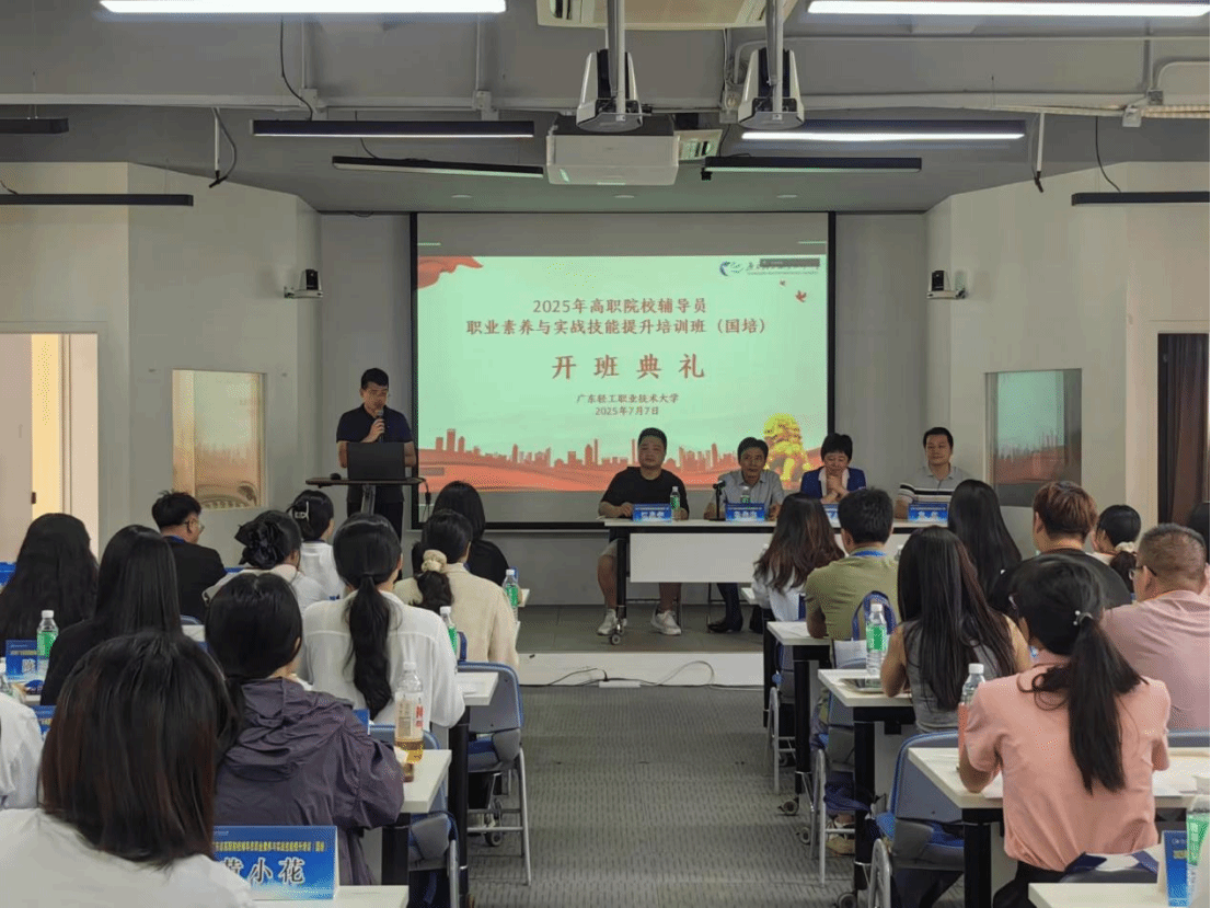 7月7日,由我校主办的“2025年高职院校辅导员职业素养与实战技能提升班”在南海校区正式拉开帷幕。校党委学生工作部主任杨伟柱、培训班负责人何小梅、班主任江启宇、谢卓华、袁牧出席开班典礼。来自全国27所高职院校的52名辅导员齐聚一堂,共同开启为期10天的专业化培训。