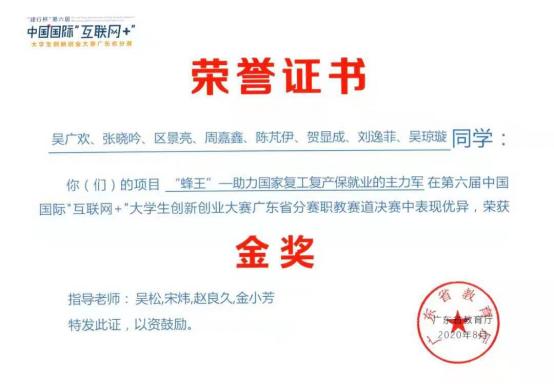 1.“蜂王”项目获得第六届中国国际互联网+创新创业大赛奖