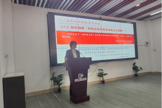 何小梅老师以“奋斗正青春,青春献给党”为主题给同学们带来一场精神的盛宴。她以"当代中国的历史性跨越"为切入点,深入浅出地阐述了以中国式现代化全面推进中华民族伟大复兴的必然性和可行性,通过党的二十大报告中对青年人的殷切寄语,让同学们进一步明晰了当代青年的使命与担当,同时也对党员同志、入党积极分子们提出了希望和要求,希望同学们以实际行动不负青春、不负韶华!