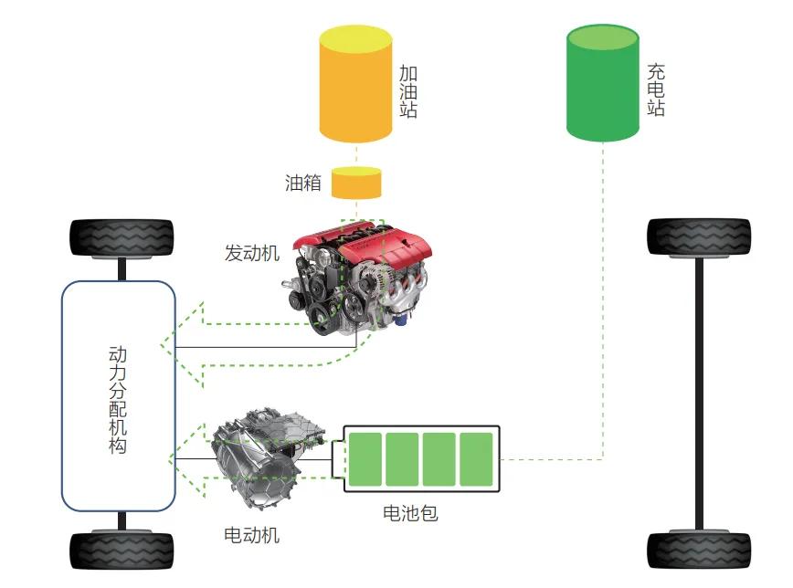 并联式混合动力汽车动力示意图