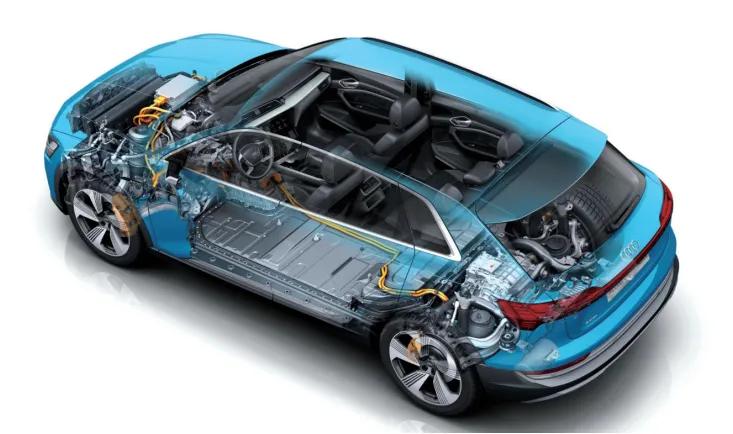 由于纯电动汽车只需充电不烧油,汽车本身不存在尾气排放带来的污染等问题,因而被视为是新能源汽车的趋势。下图所示为纯电动汽车的代表车型奥迪e-tron。