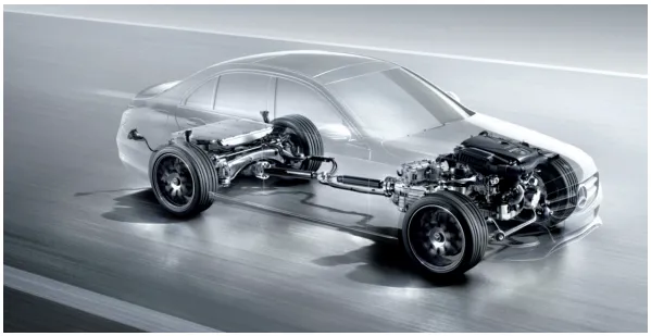 这种驱动形式最大的特点是:发动机和电动机会有一个动力分配机构完成动力耦合。简单理解的话,并联式混合动力汽车是在传统燃油汽车由发动机+变速器组成的动力总成的基础上加了一套纯电动汽车由电池包+电动机组成的动力总成,二者共同驱动车辆行驶。下图所示为并联式混合动力汽车的代表车型奔驰C350插电版。